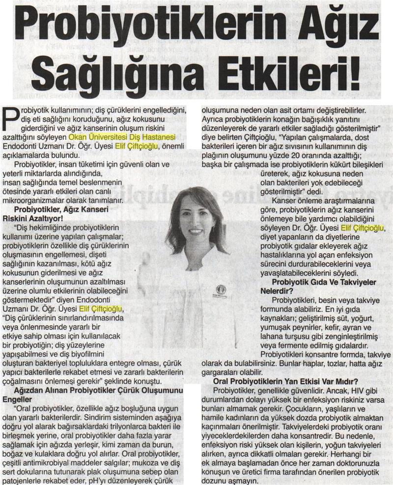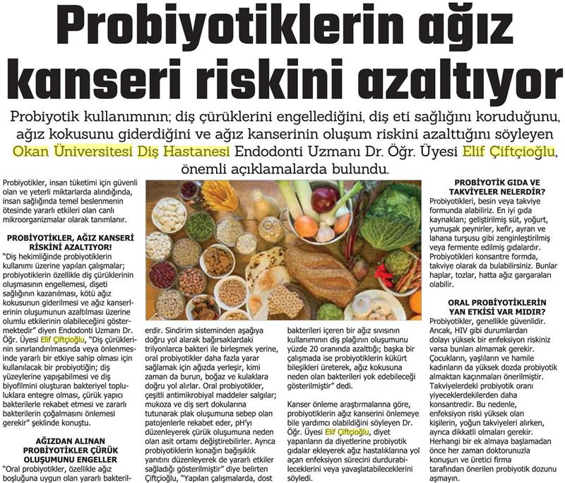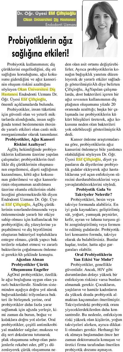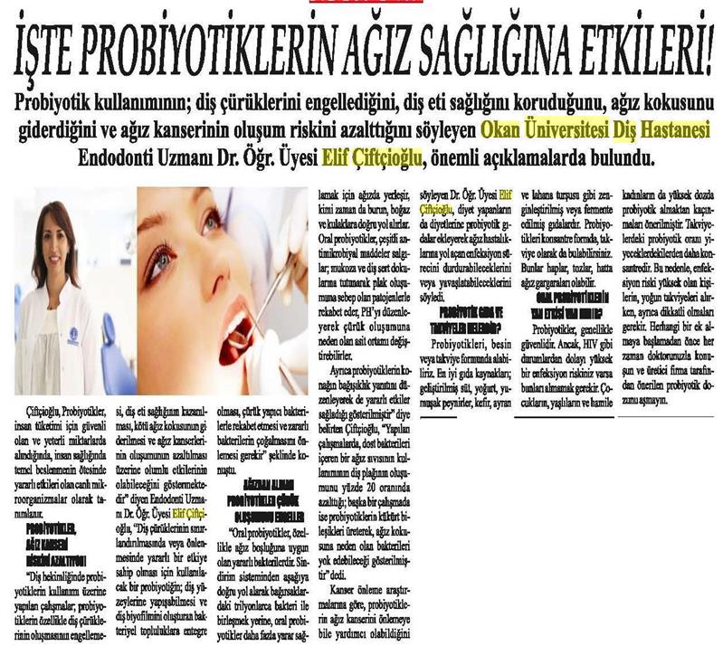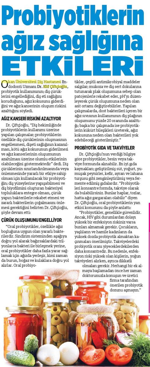 09.07.2018 Yeni Birlik PROBİYOTİKTERİN AĞIZ SAĞLIĞINA ETKİLERİ