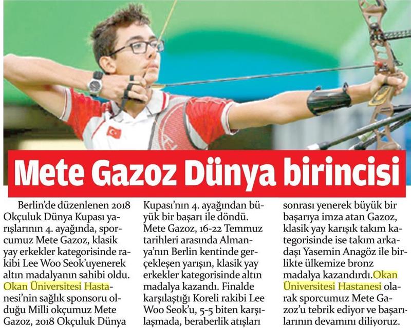 27.07.2018 Dünya İyilik Sağlık METE GAZOZ DÜNYA ŞAMPİYONU