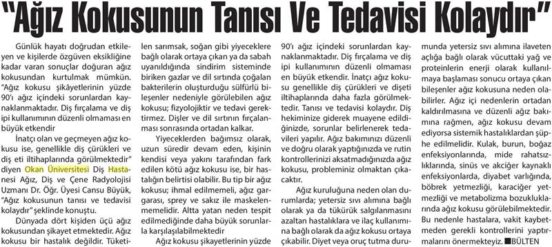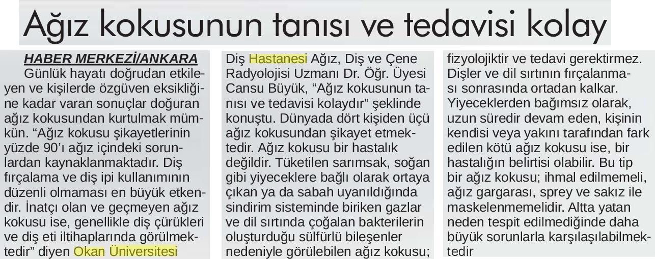 25.07.2018 24 Saat Gazetesi AĞIZ KOKUSUNUN TANISI VE TEDAVİSİ KOLAY