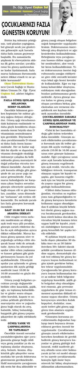 26.07.2018 Çorum Haber ÇOCUKLARINIZI FAZLA GÜNEŞTEN KORUYUN!